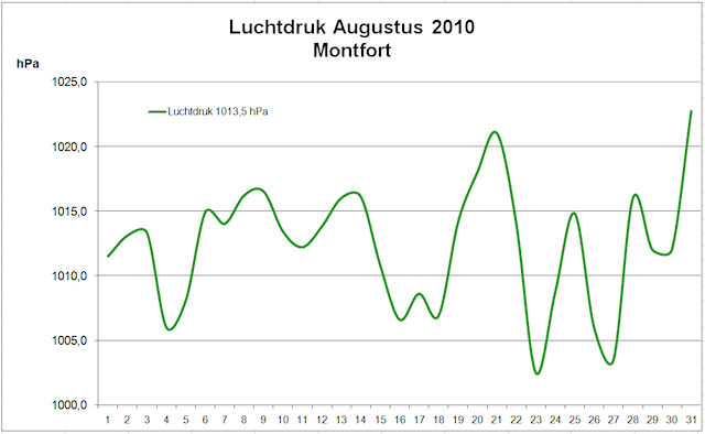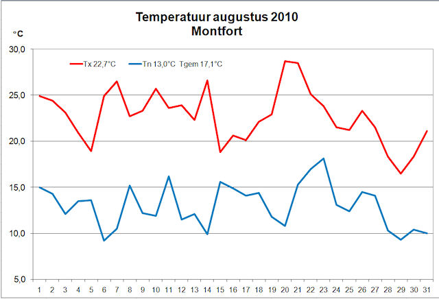 ( T = maximum- minimum- en 24-uursgemiddelde temperatuur in °C, N = neerslag in mm, LD = gemiddelde luchtdruk in hPa ).