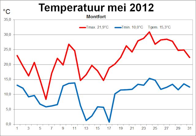 ( T = temperatuur in °C, N = neerslag in mm, LD = luchtdruk in hPa