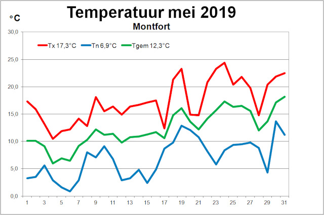 ( T = temperatuur in °C, N = neerslag in mm, LD = luchtdruk in hPa