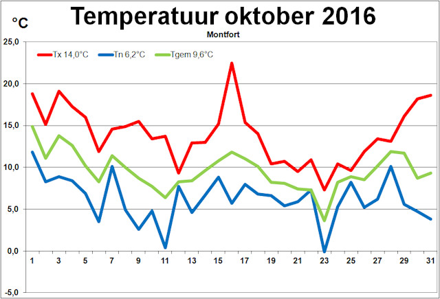 ( T = temperatuur in °C, N = neerslag in mm, LD = luchtdruk in hPa ).