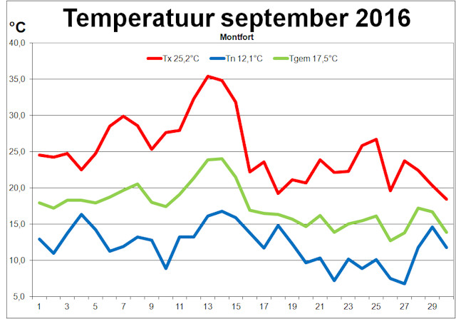 ( T = temperatuur in °C, N = neerslag in mm, LD = luchtdruk in hPa ).