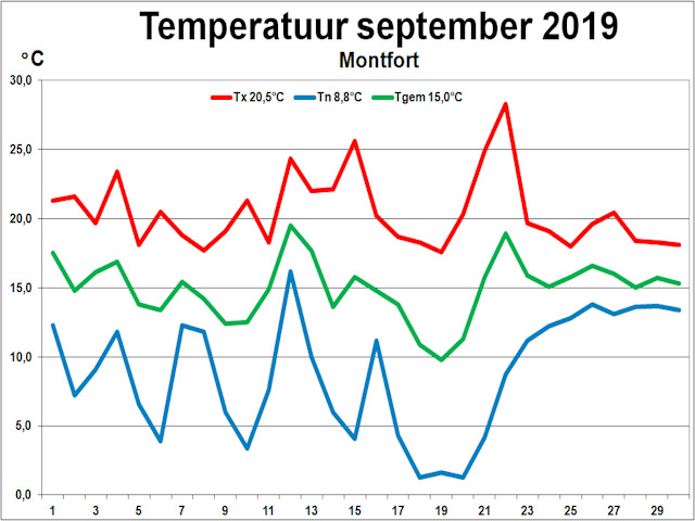 ( T = maximum- minimum- en 24-uursgemiddelde temperatuur in °C, N = neerslag in mm, LD = gemiddelde luchtdruk in hPa ).
