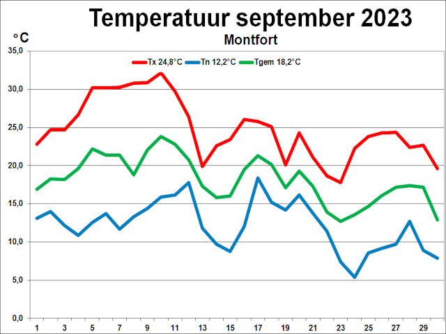 ( T = maximum- minimum- en 24-uursgemiddelde temperatuur in °C, N = neerslag in mm, LD = gemiddelde luchtdruk in hPa ).