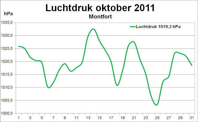 ( T = temperatuur in °C, N = neerslag in mm, LD = luchtdruk in hPa ).