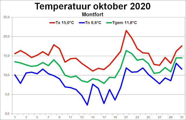 ( T = temperatuur in °C, N = neerslag in mm, LD = luchtdruk in hPa ).